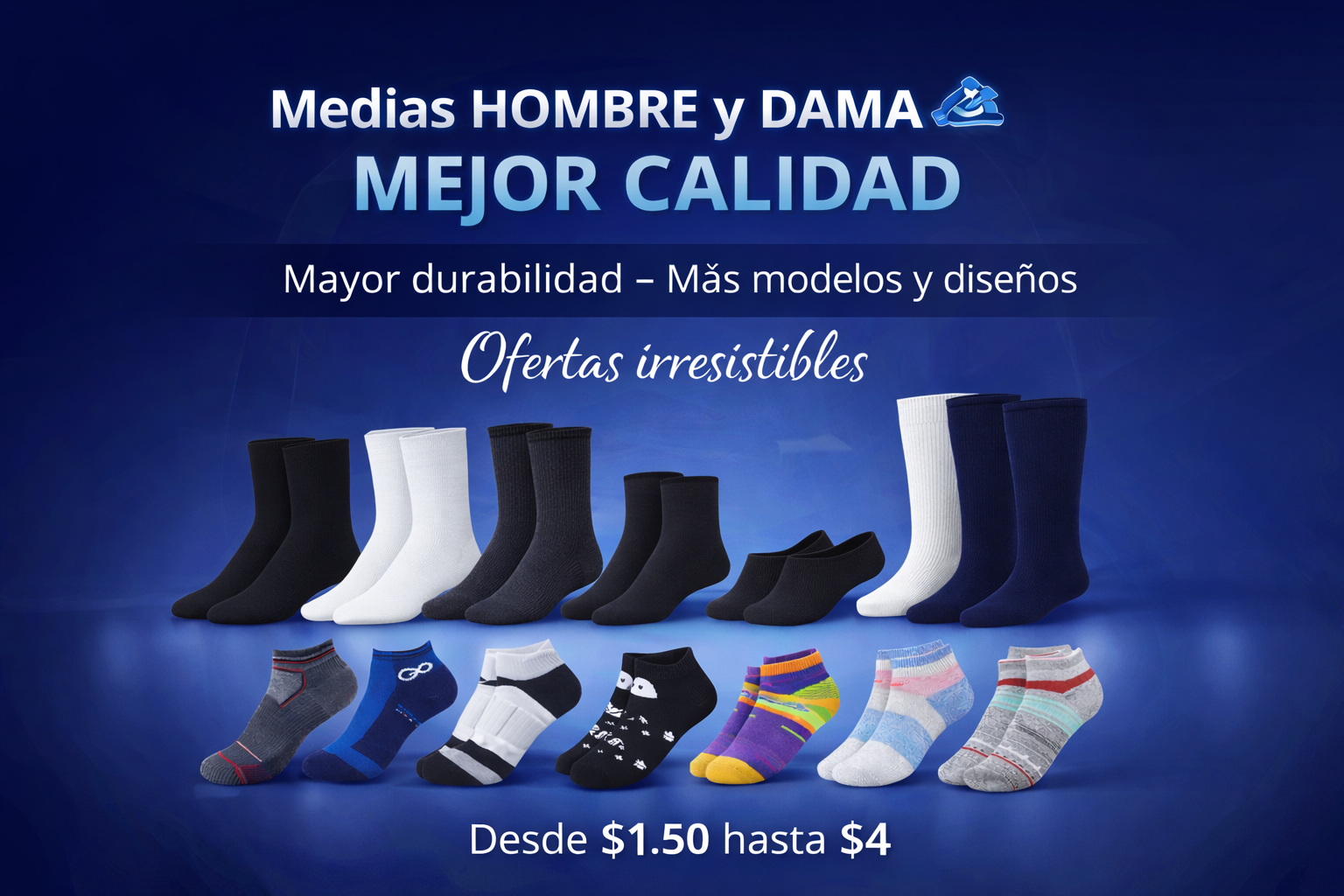 En Ventas Bahía ofrecemos medias, boxers y prendas esenciales para hombre y mujer, combinando comodidad, calidad y precios justos. Todo lo que usas a diario, en un solo lugar.